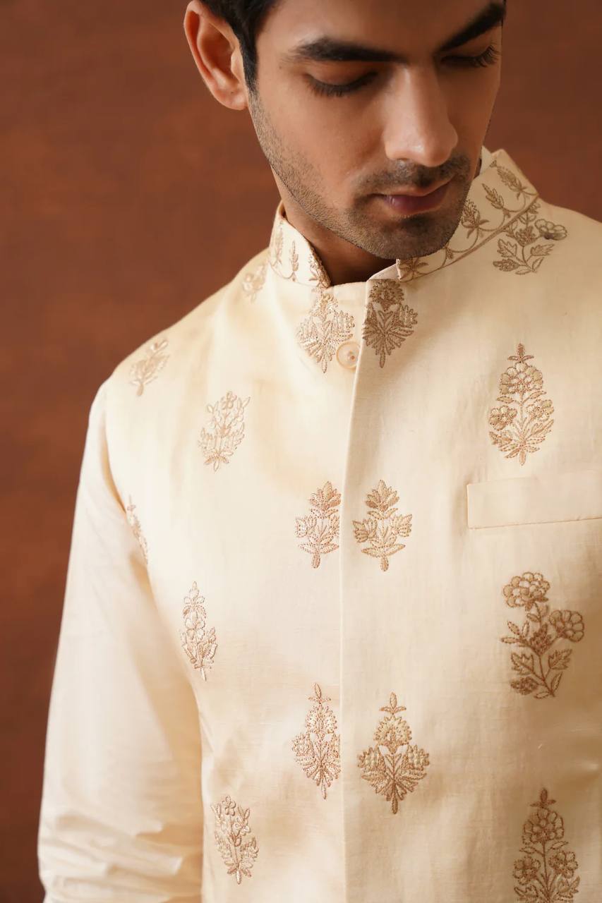 BEIGE EMBROIDERED JACKET AND KURTA SET FOR MEN'S