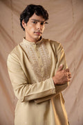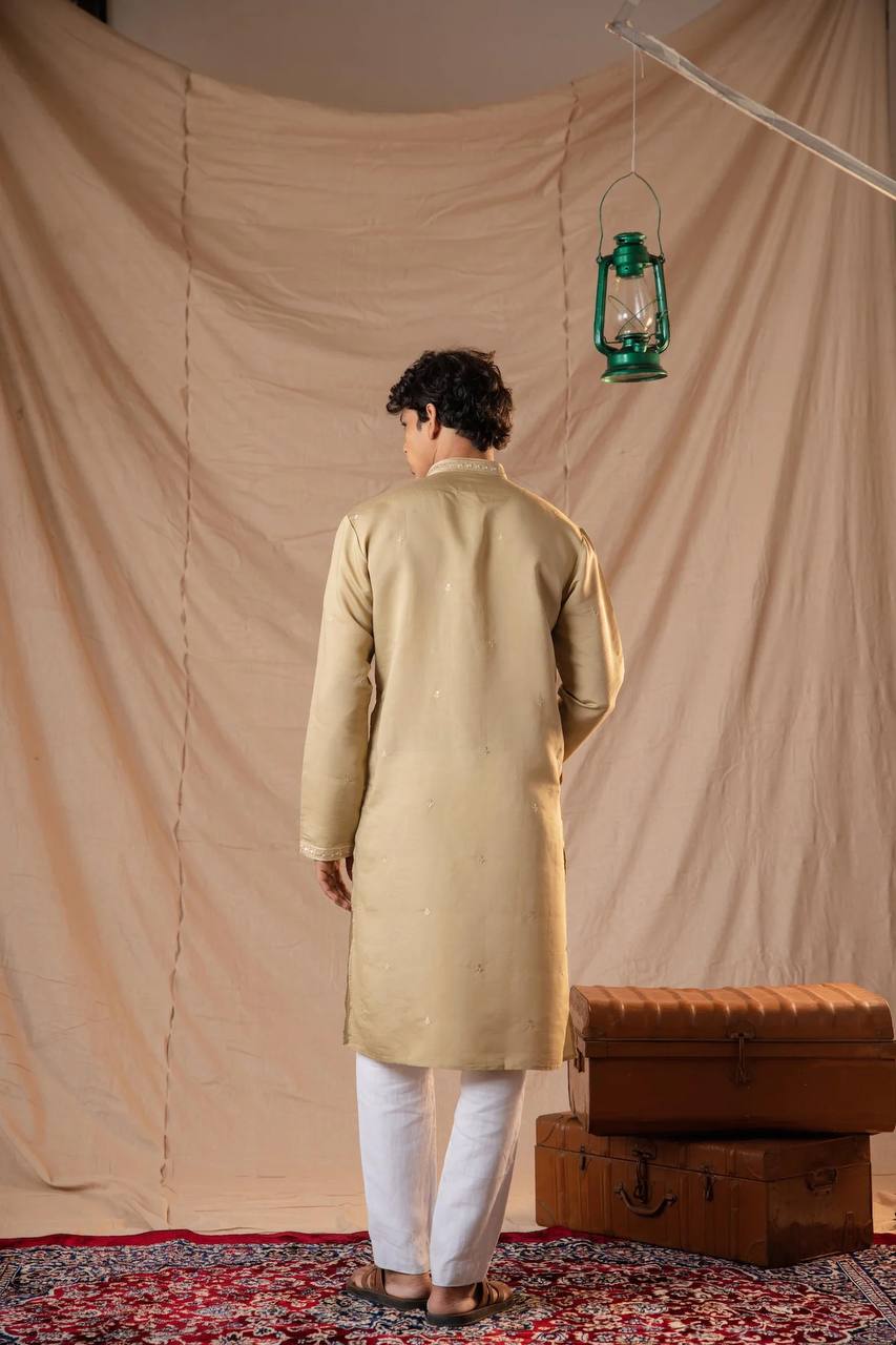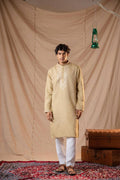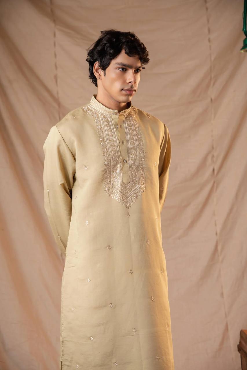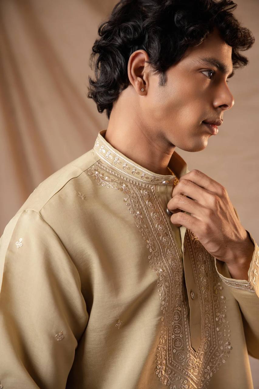 BEIGE NECK SEQUENCE EMBROIDERED WORK MEN’S KURTA WITH PAJAMA
