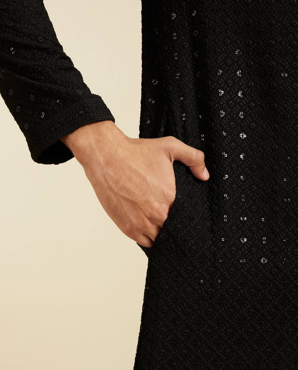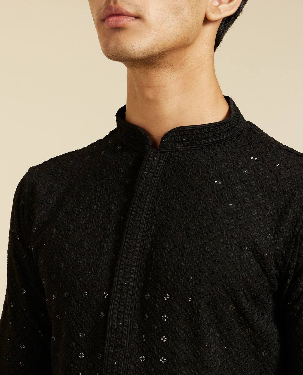 JET BLACK CHIKANKARI EMBROIDERED KURTA PAJAMA SET