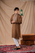 BROWN SEQUENCE NECK EMBROIDERED WORK MEN’S KURTA WITH PAJAMA