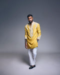 HP YELLOW DORI WORK EMBROIDERED KURTA WITH PAJAMA
