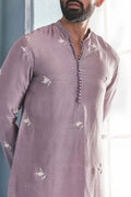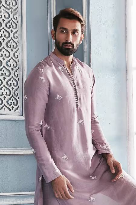 This Purple colour n white SEQUENCE Embroidered Work Men's Kurta with Pajama Is Created by Tatvam Kurta ,This Hand-stitched Kurta Is Made of 100% Pure Cotton Fabric With Having embroidered work Over It. Our Attractive embroidery Add More Charm to Your Look, Wear This at Any Time Because the Fabric Is So Smooth to Skin That You Will Love It.