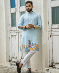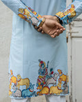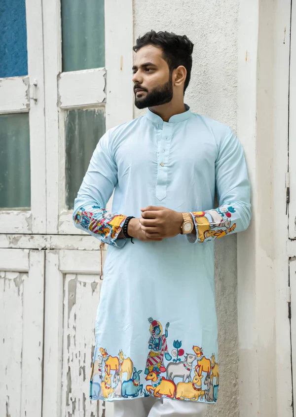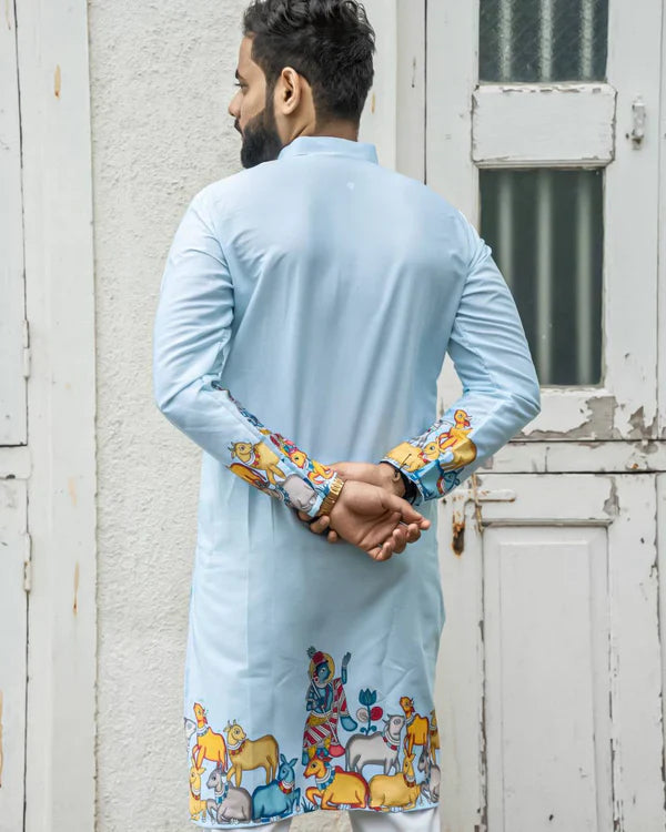 SKY BLUE KRISHNA WITH COW PRINT KURTA PAJAMA