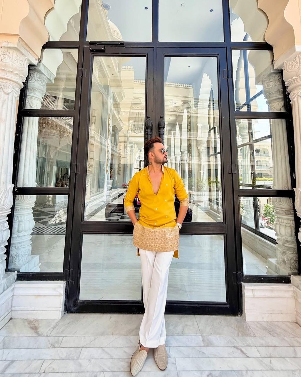 YELLOW JARI EMBROIDERED WORK KURTA PANT SET