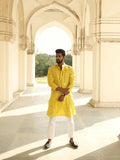 Yellow Sequence Embroidered Work Men's Kurta with Pajama